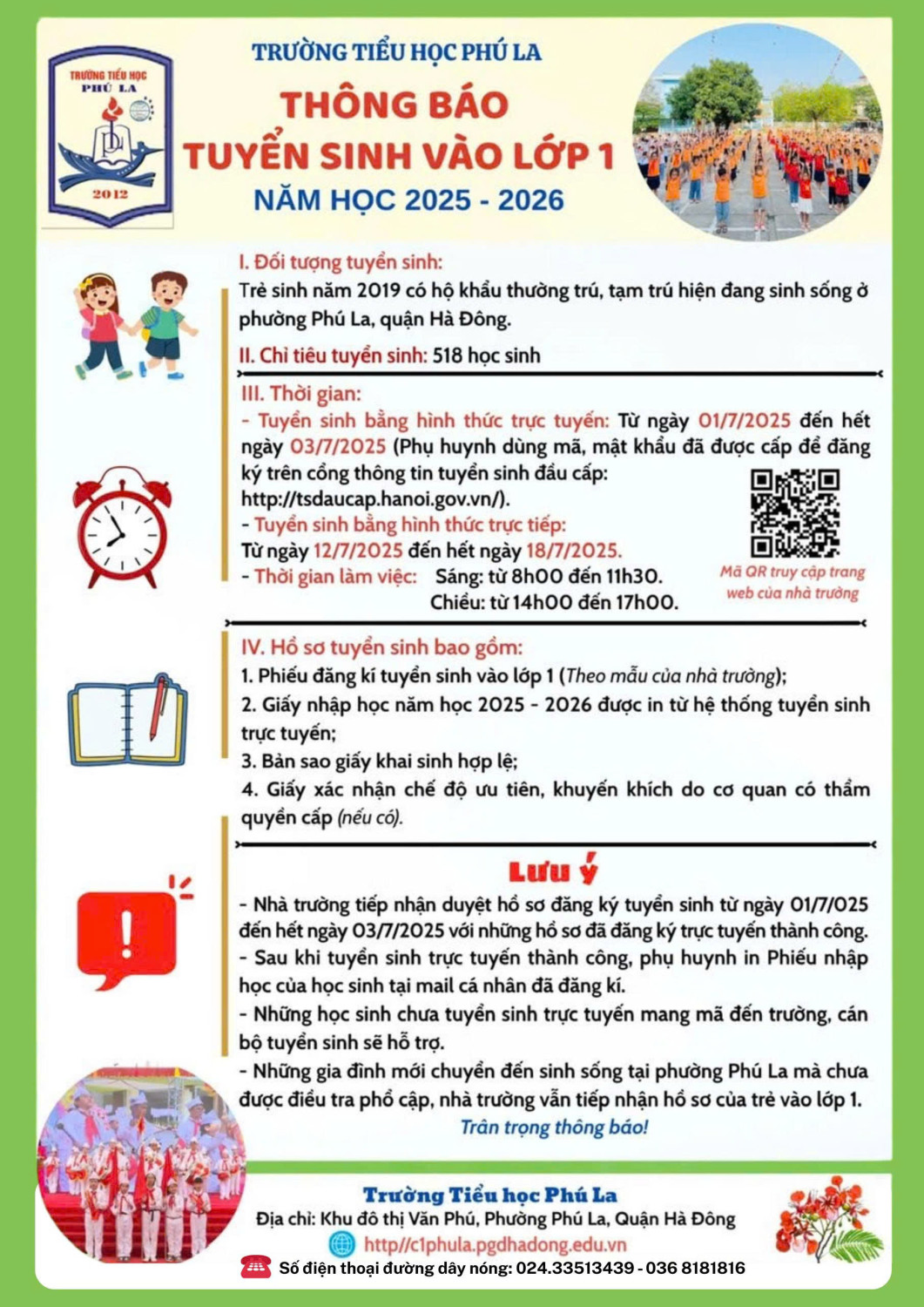 Thông báo tuyển sinh lớp 1, năm học 2025 - 2026 của trường tiểu học Phú La